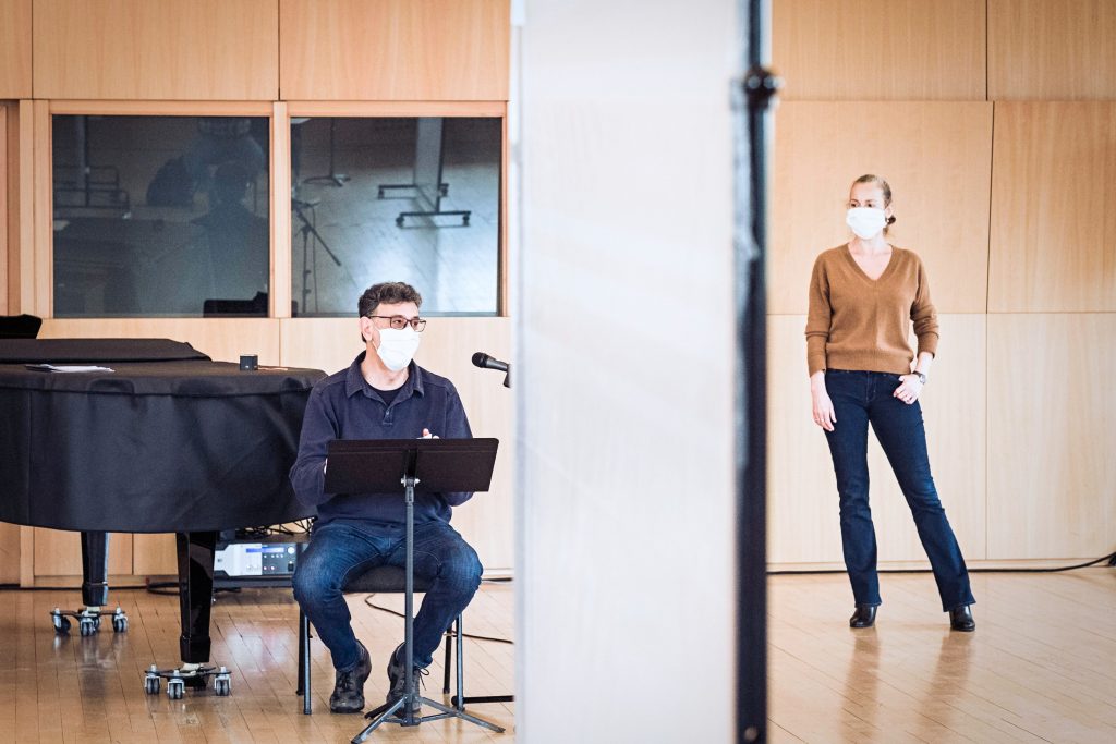 L’activité reprend prudemment dans les coulisses de l’Opéra national du Rhin suivant un protocole strict de distance physique et masquée. A Strasbourg et à Mulhouse, les répétitions s’organisent en contournant ce handicap. Tous séparés mais ensemble, les chanteurs comme les danseurs révisent leurs gammes et leurs mouvements, pendant que le plateau sort doucement du noir et du silence © Klara Beck / Light Motiv