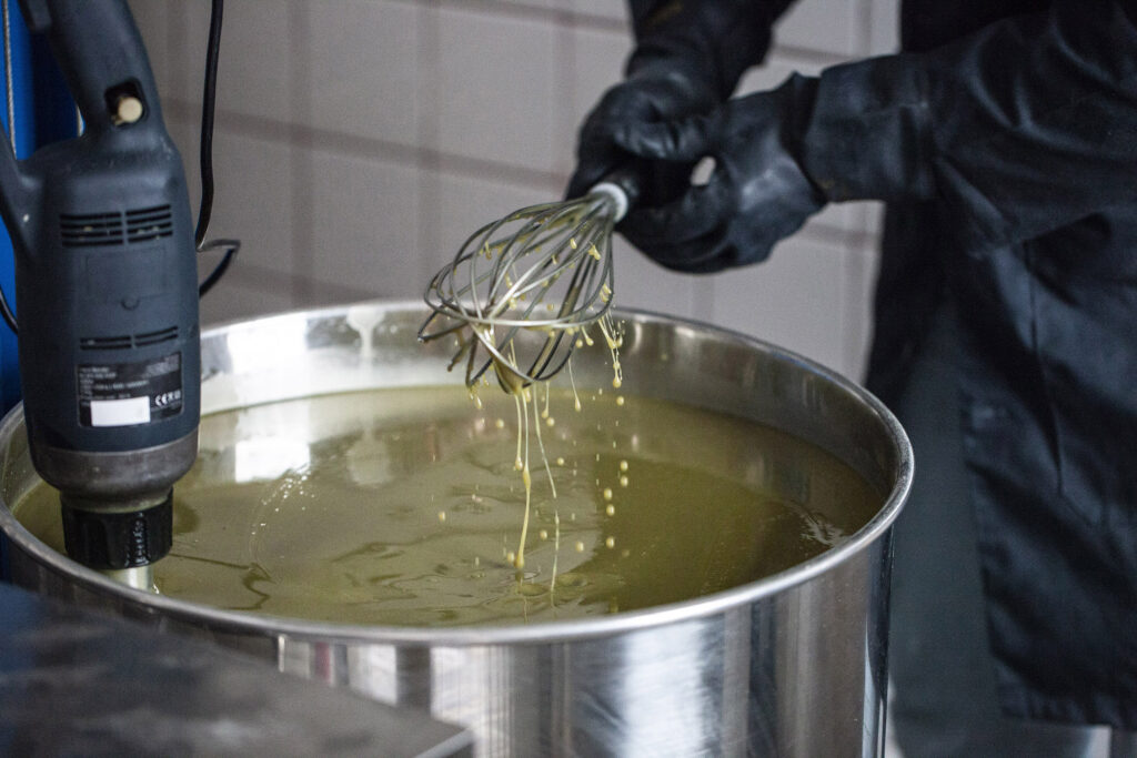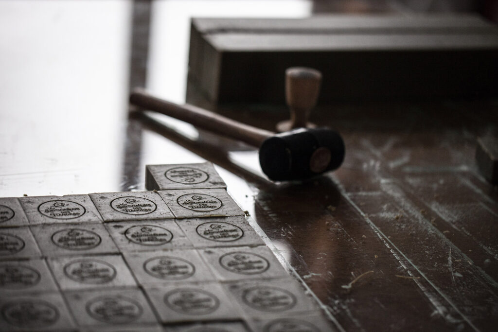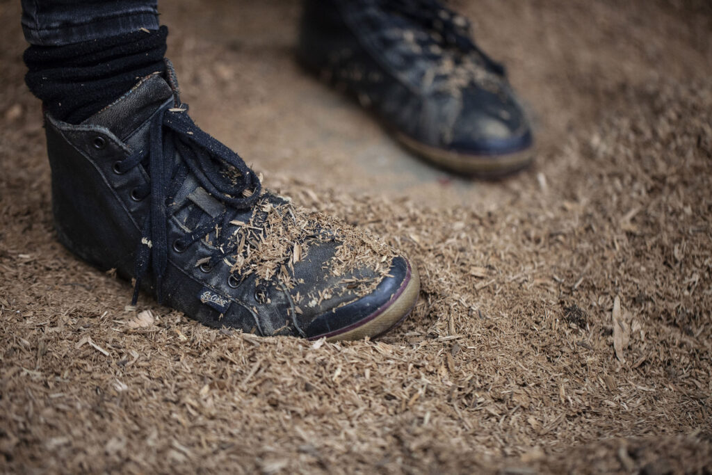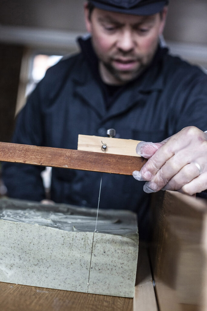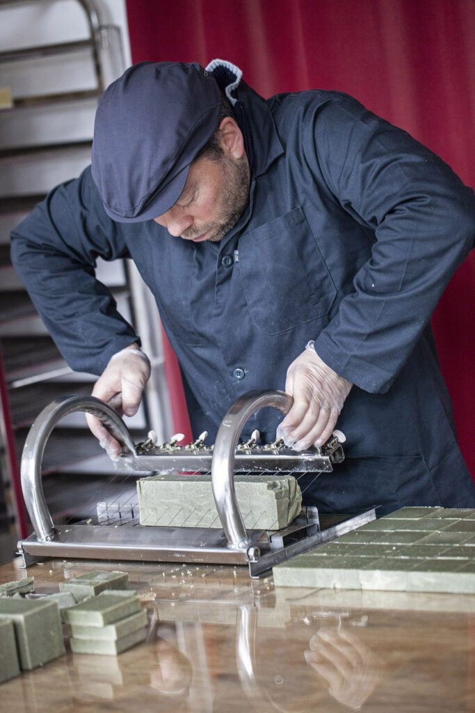 Dans l'atelier de Lucille, tourneuse sur bois, à Locre à la frontière belge.. Dégrossir le bloc de bois. Partager