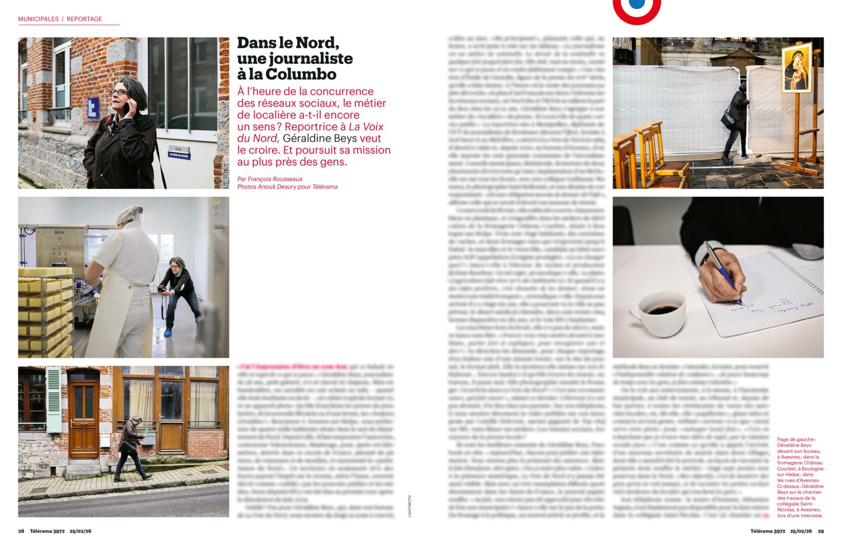 Parution d'Anouk Desury / Light Motiv pour un article intitulé "Dans le Nord, une journaliste à la Columbo" écrit par François Rousseaux dans Télérama en février 2026 .