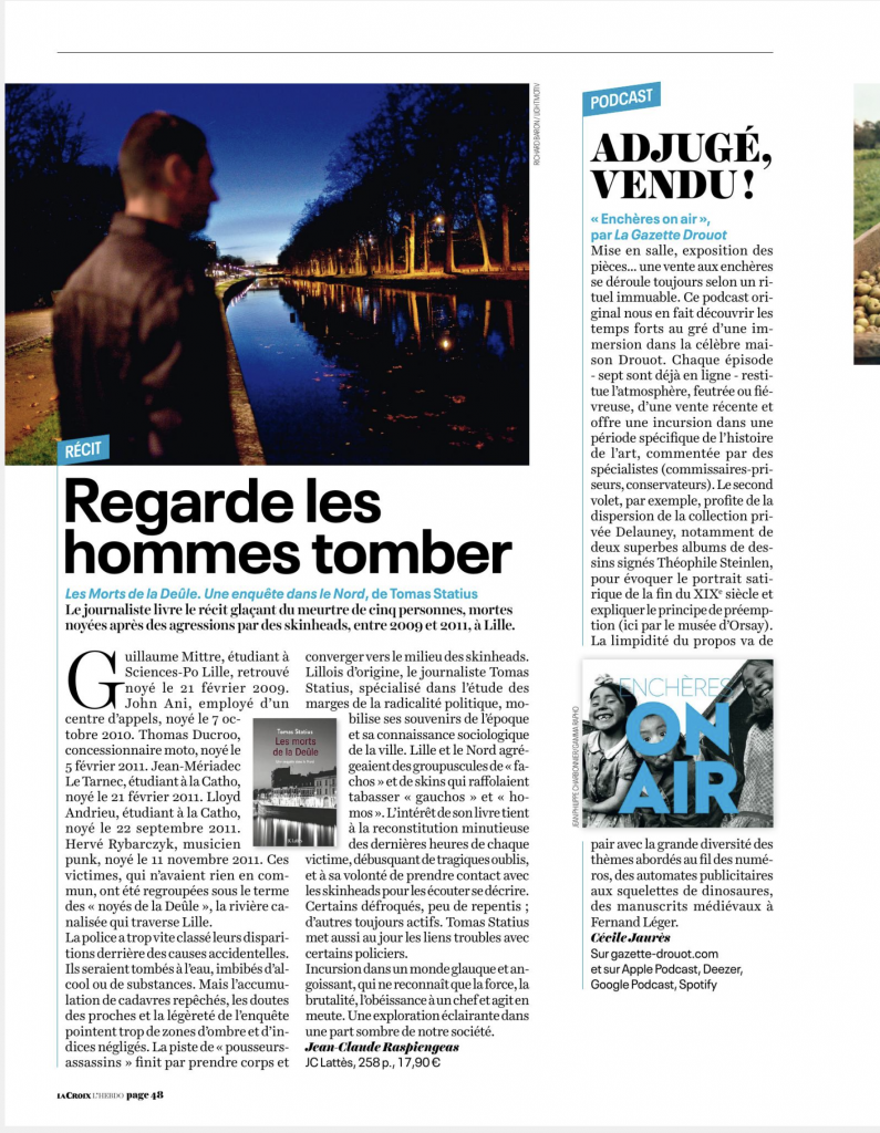 La Croix L'Hebdo a choisi une photographie de Richard Baron pour illustrer la chronique littéraire du livre de Tomas Statius, "Les morts de la Deûle, une enquête dans le Nord" (éditions JC Lattès)