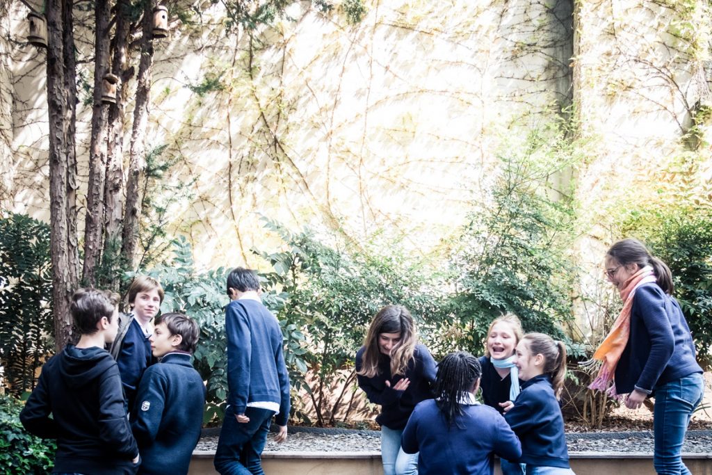 Photographie au dessus de l'animation d'une cour durant le confinement en 2020 par Klara Beck