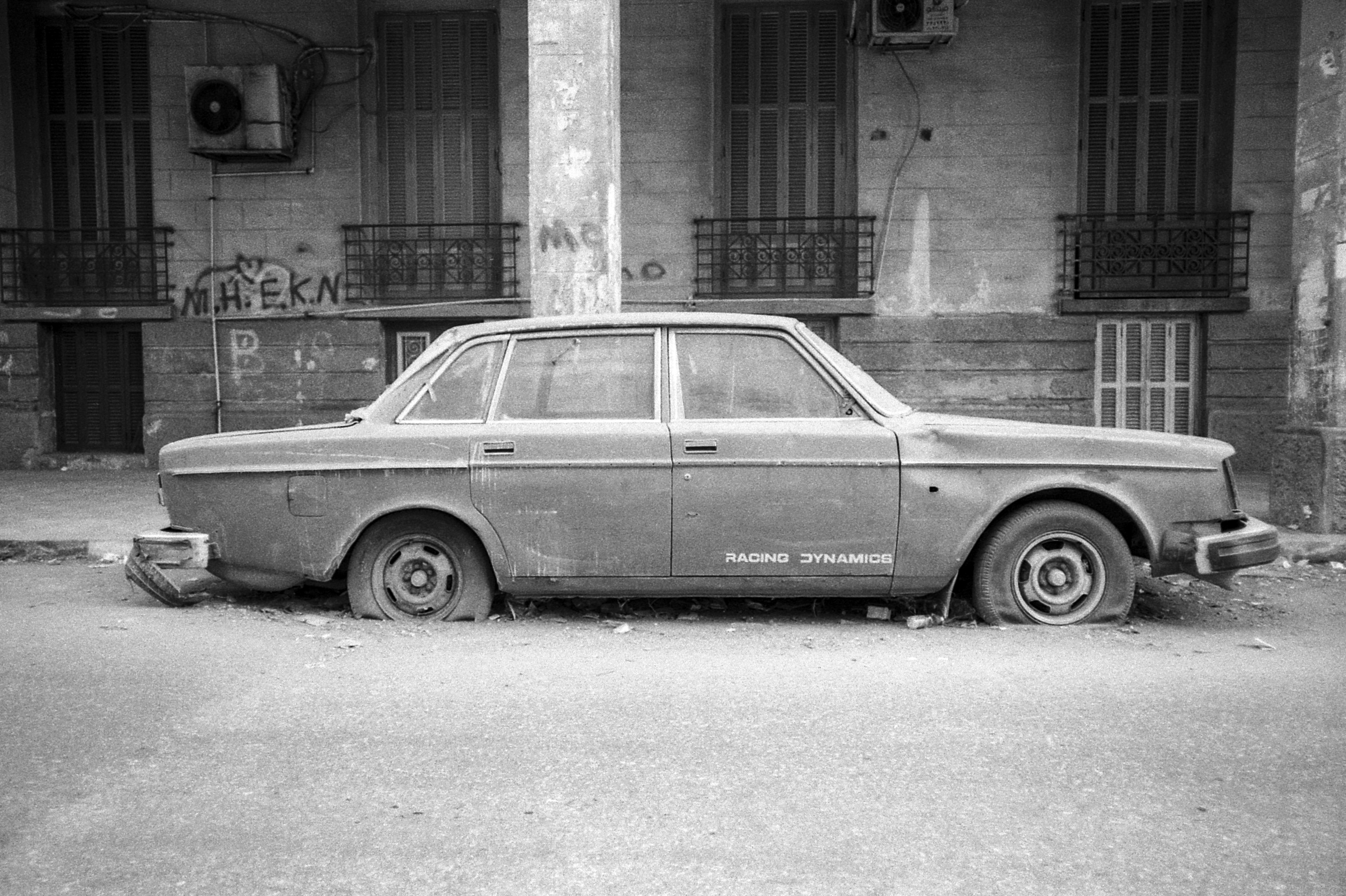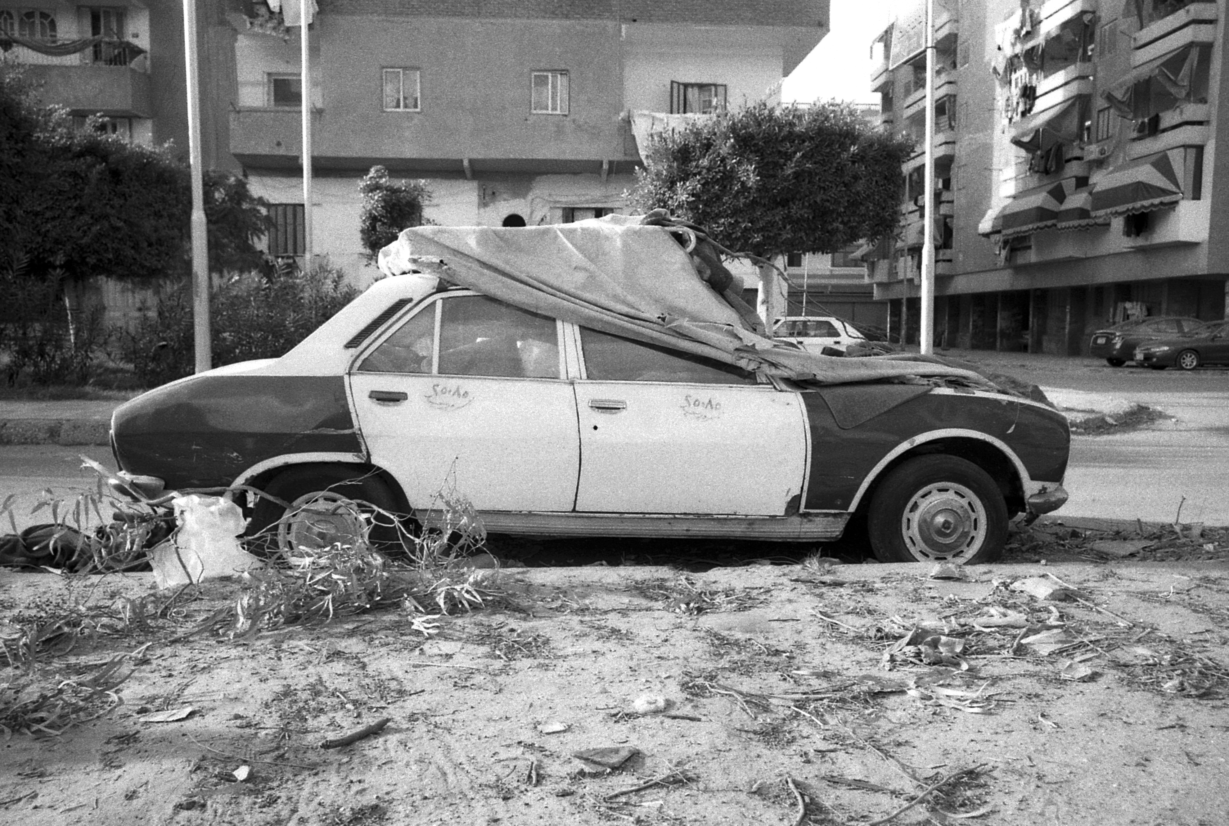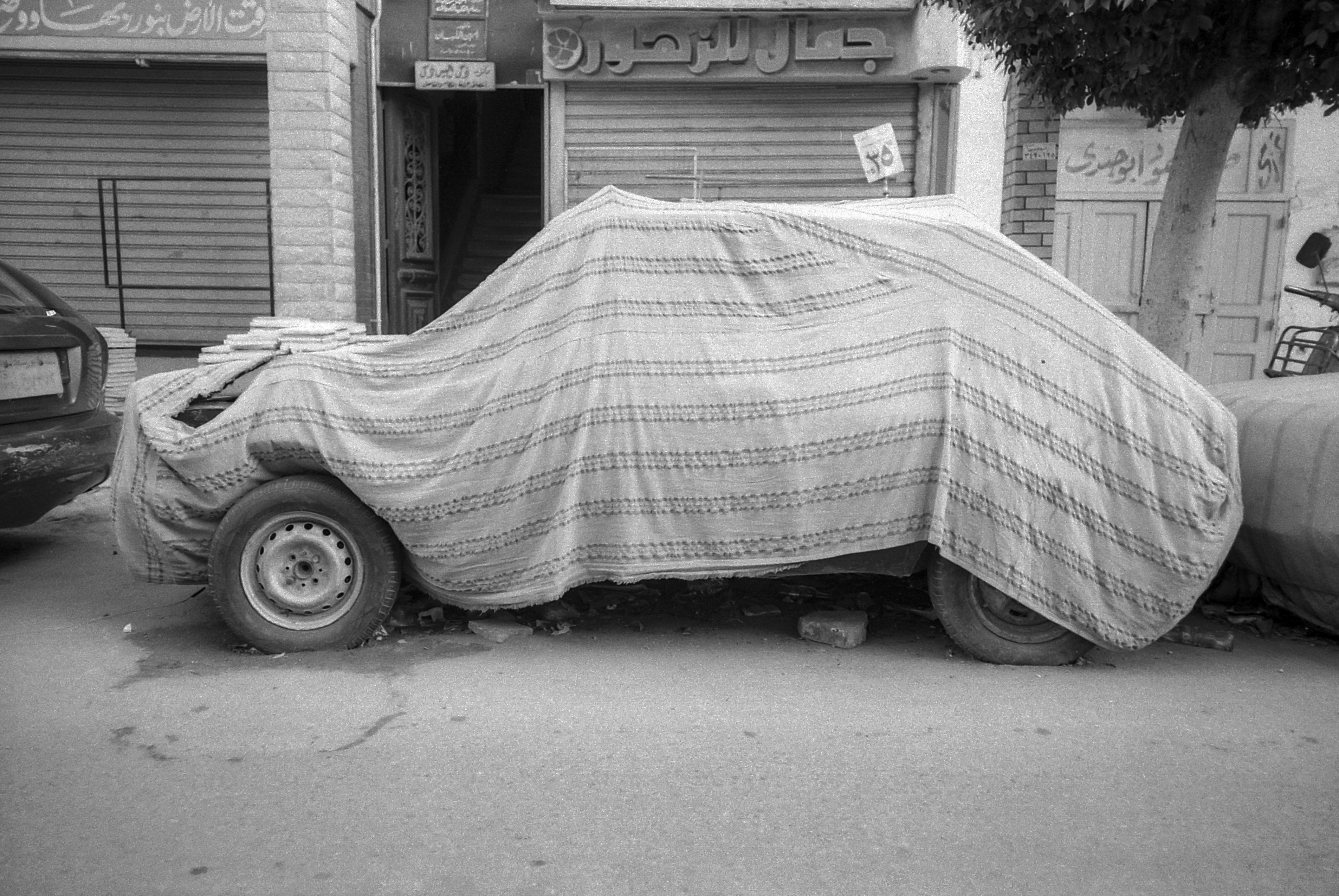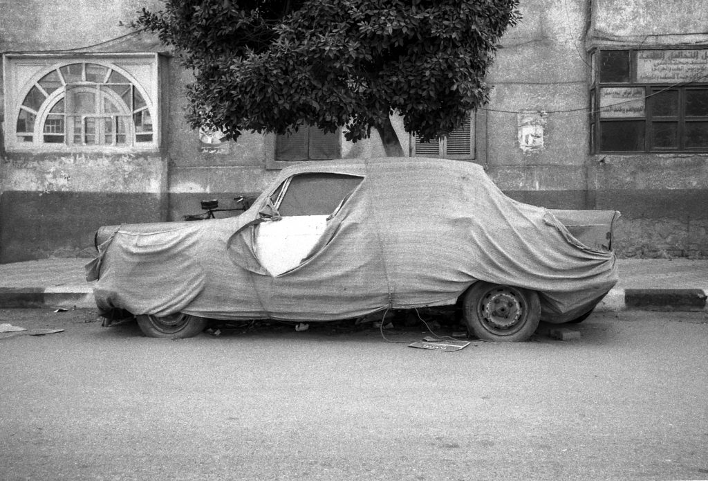 Du coup, je trouve un objet de compensation : à défaut de photographier les Port-Saïdis, je tire le portrait des voitures abandonnées dans la rue : certaines sont intégralement voilées, d’autres ont juste une sorte de hijab. Certaines, probablement les plus émancipées, sont entièrement nues...